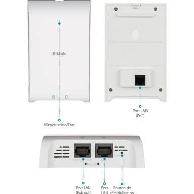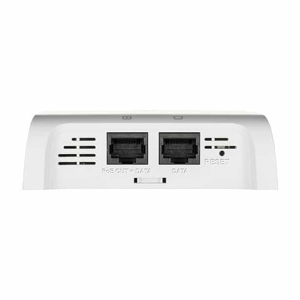 Point d'accès mural Nuclias Connect Wi-Fi AC1200 Wave 2 PoE Dual-Band simultané Administrable via Nuclias Connect (matériel ou logiciel) 1 port Gigabit PoE 802.3at – 1 port de sortie pour alimenter un appareil PoE (Max 12W)