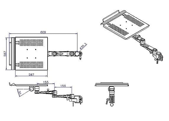 - Longueur maximale du bras (modèle long): écartement jusqu'à 600mm
