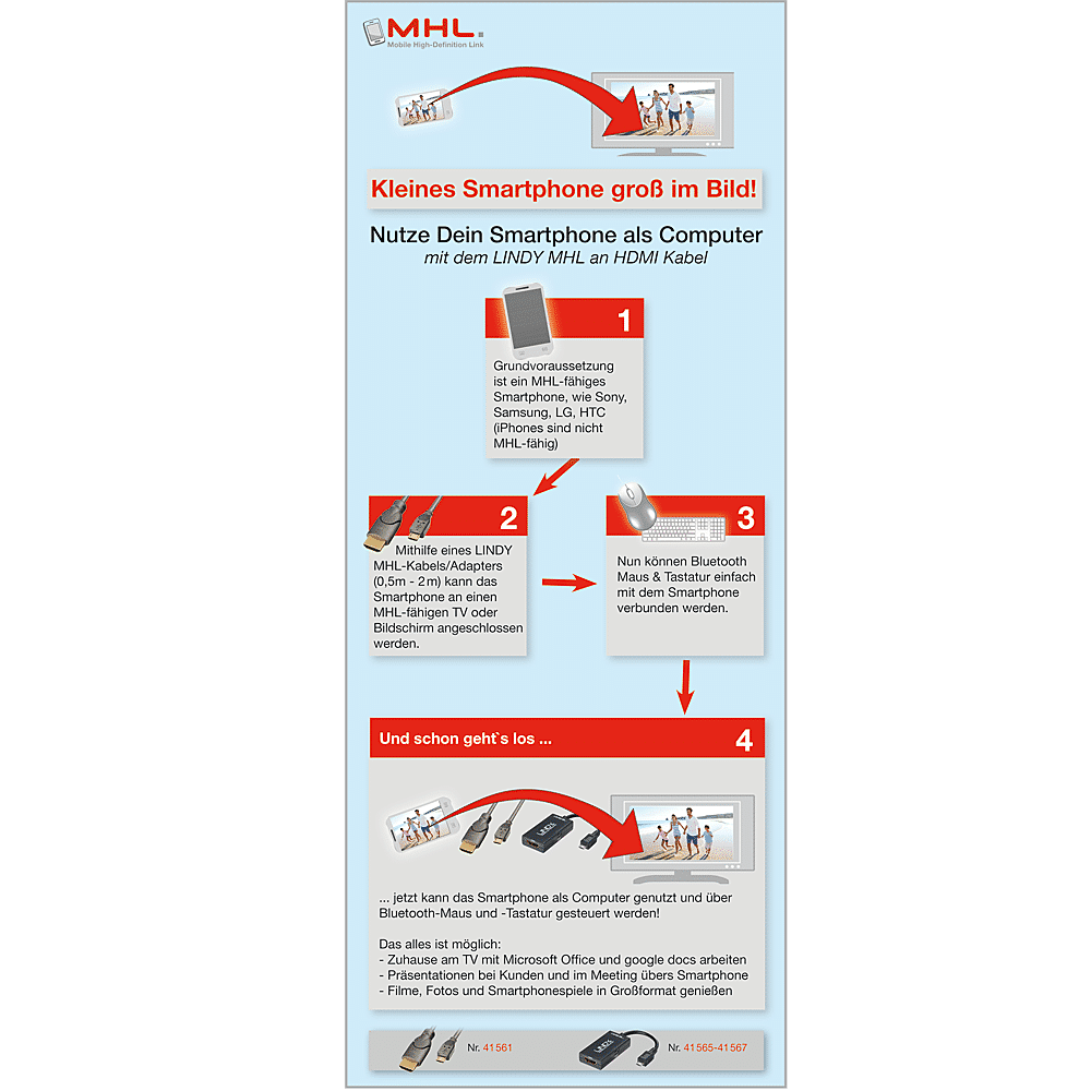 - Prise MHL mâle (type USB 2.0 micro-B)