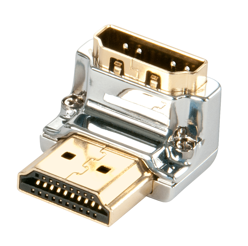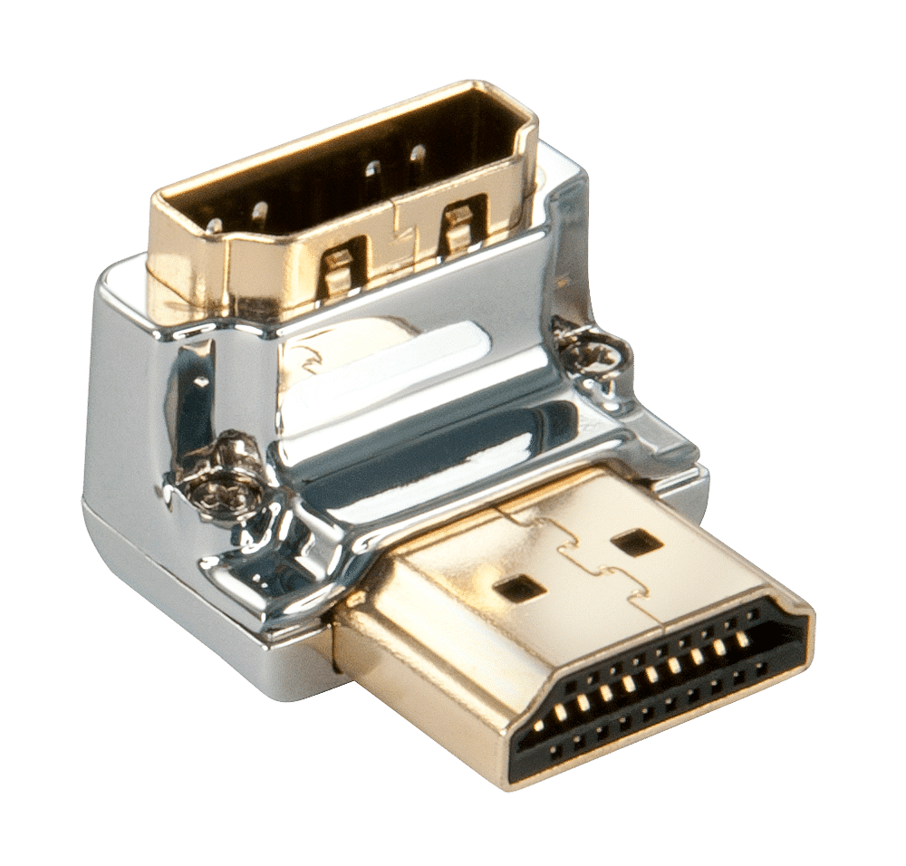 - Adaptateur HDMI court type A 19 pins, doré, coudé à 90°