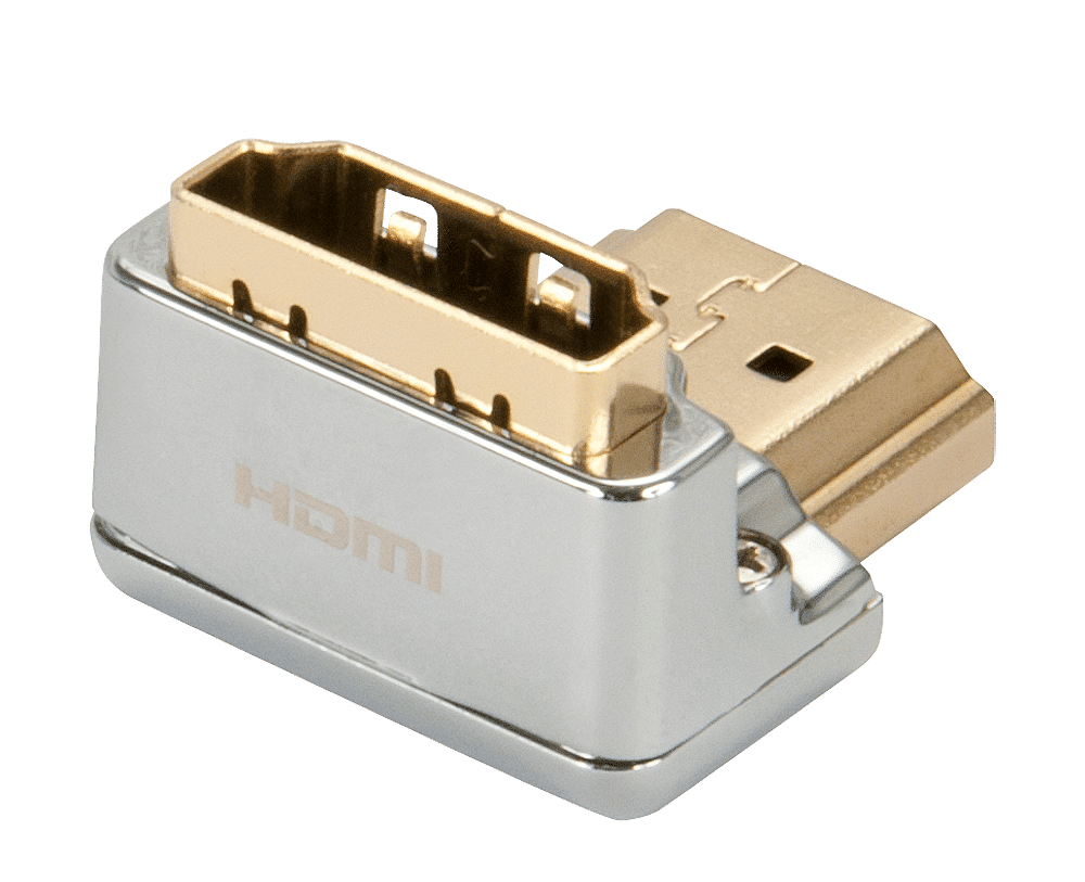 - Avec les prises HDMI de vos appareils, dont la partie courte est placée en bas le plus couramment, cet adaptateur coudé permettra un branchement de vos câbles HDMI par le bas.