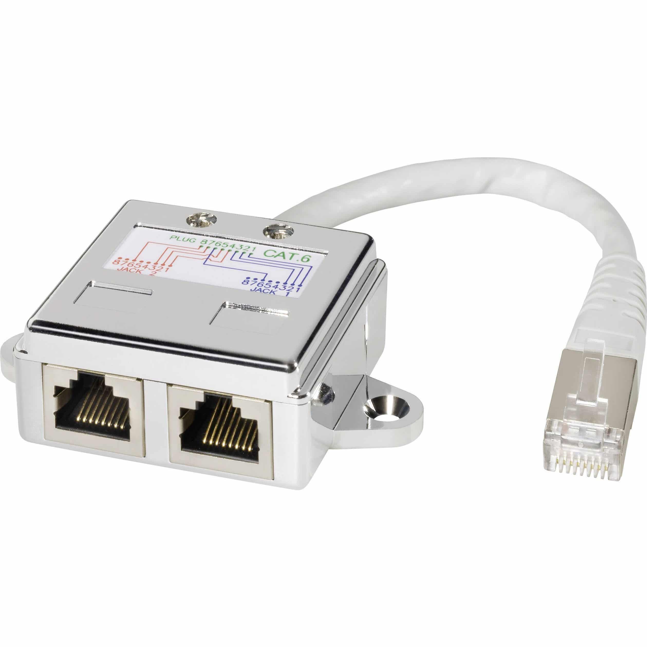 AccueilConnectiqueCâble Réseau RJ45AccessoiresDoubleur de portEclateur RJ45 Mâle / 2 Femelles Cat 6 STP