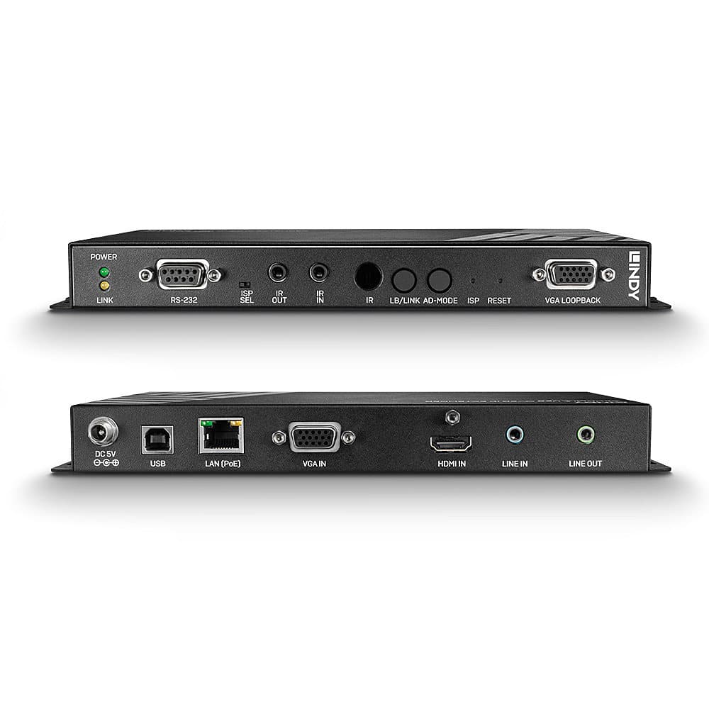- Transmet des signaux HDMI 4K (3840x2160p60Hz 4:2:0) ou VGA (max 1920×1200) sur un réseau IP Gigabit