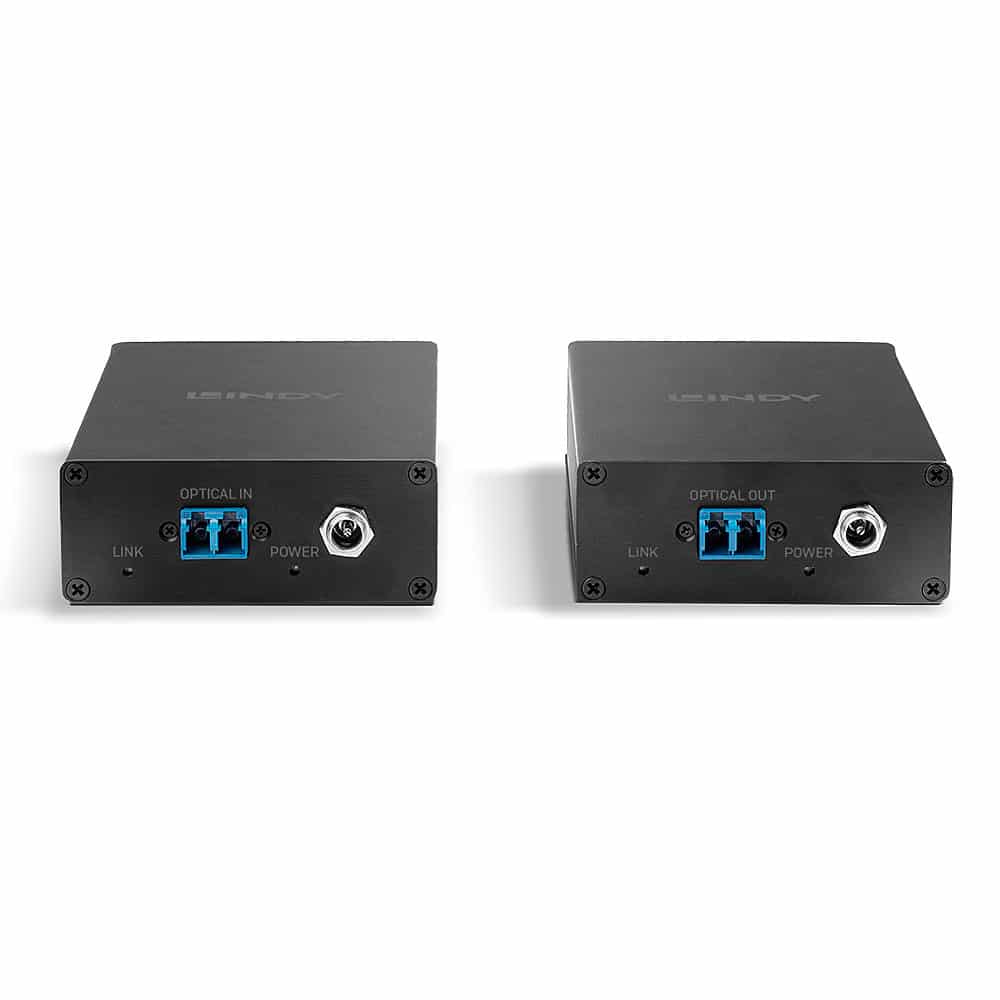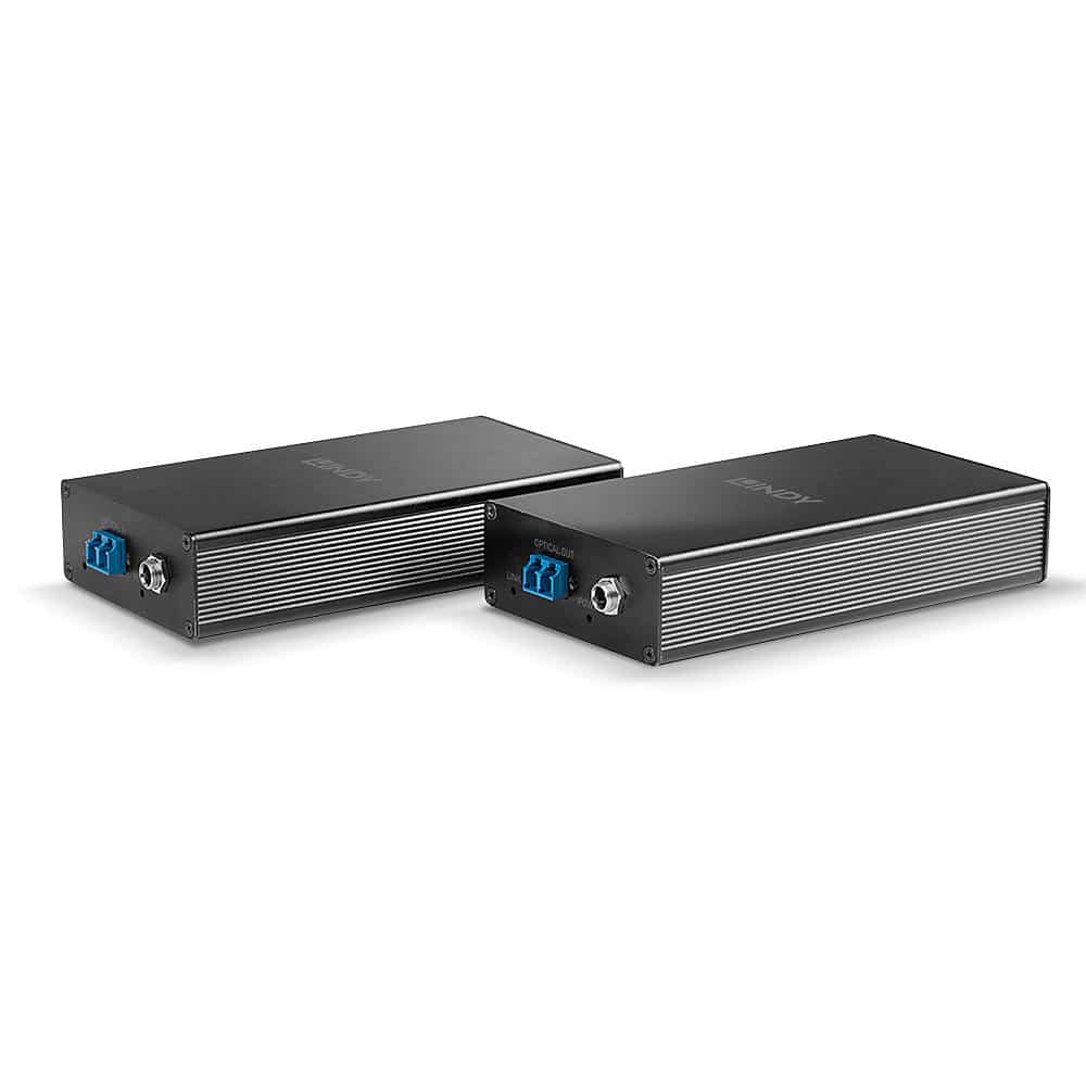 Contrairement aux systèmes d'extension en cuivre, l'utilisation de câbles en fibre optique garantit également l'immunité aux radiofréquences et aux interférences électromagnétiques grâce à une isolation galvanique et à une résistance élevée, ce qui permet d'obtenir un signal stable dans les environnements commerciaux ou industriels "bruyants" qui peuvent subir de fortes interférences de la part de l'électronique. Le boîtier métallique de qualité supérieure des deux unités fourni une couche supplémentaire d'immunité aux interférences.
