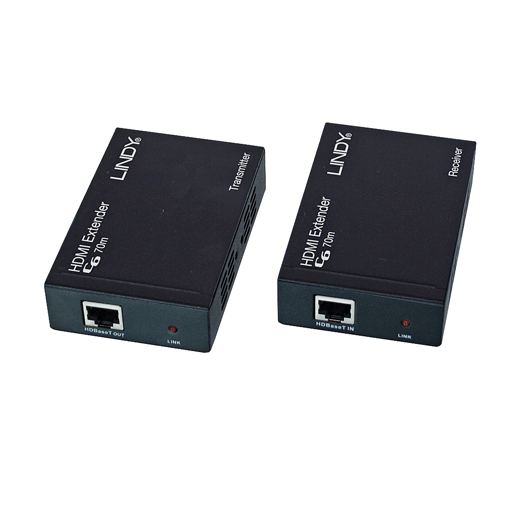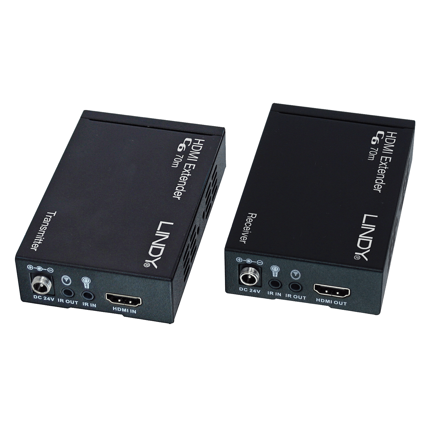 Le kit extender 70m Cat.6 HDMI & IR HDBaseT avec PoC est une solution point-à-point pour transmettre des signaux HDMI sur de longues distances via un câble réseau Cat.6.