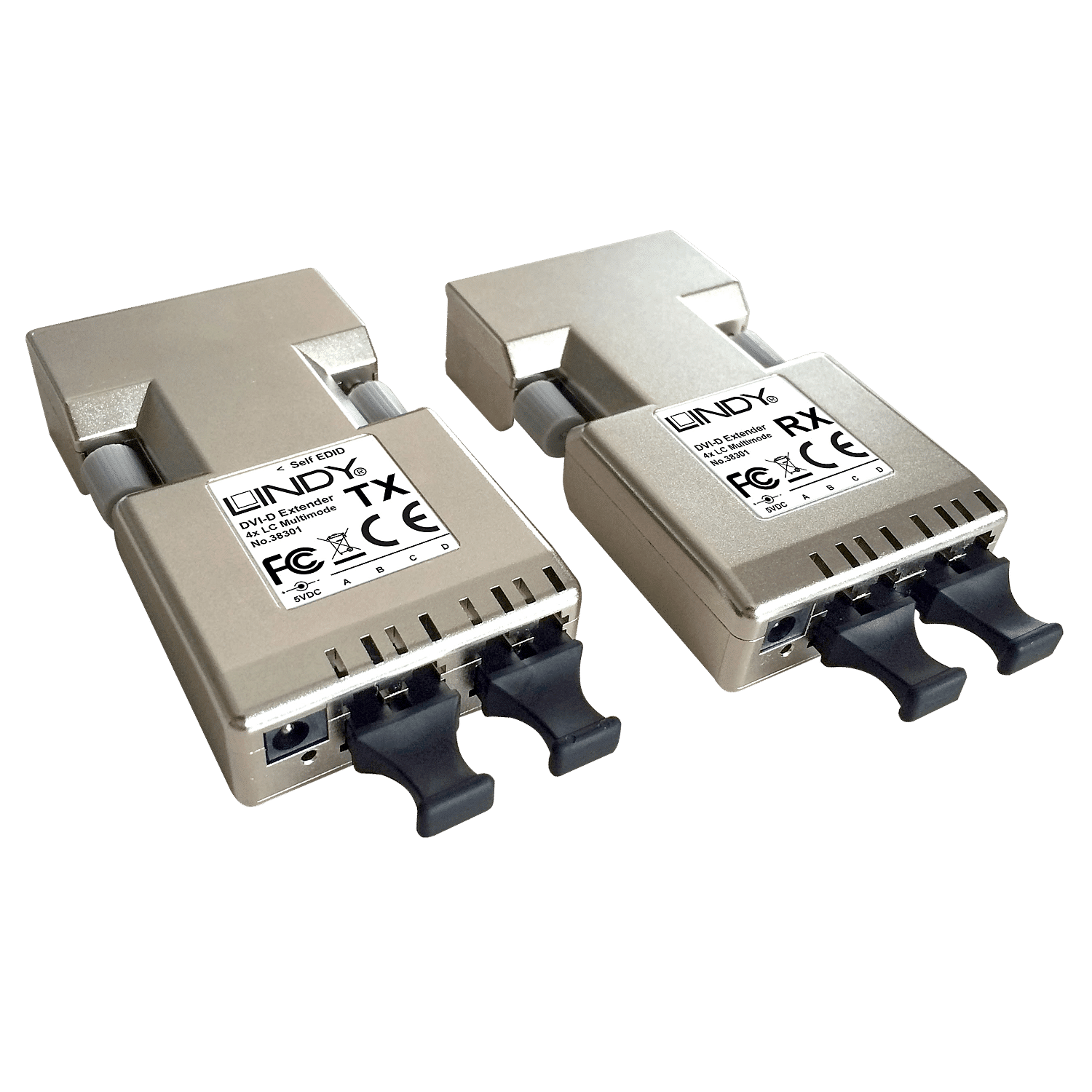- Simple à connecter, émetteur (Transmitter) et récepteur (Receiver) à brancher aux connectiques DVI et d'alimentation, les liaisons entre les boîtiers sont réalisées à l'aide de fibres optiques LC Duplex