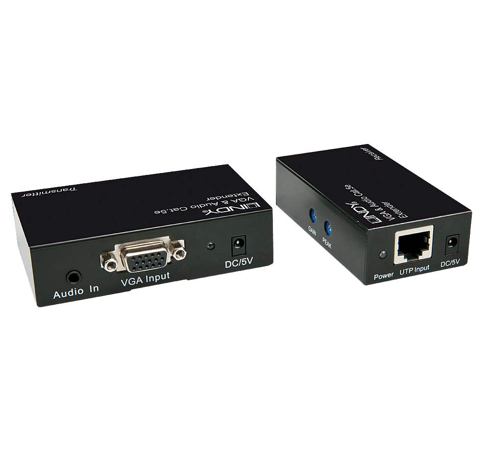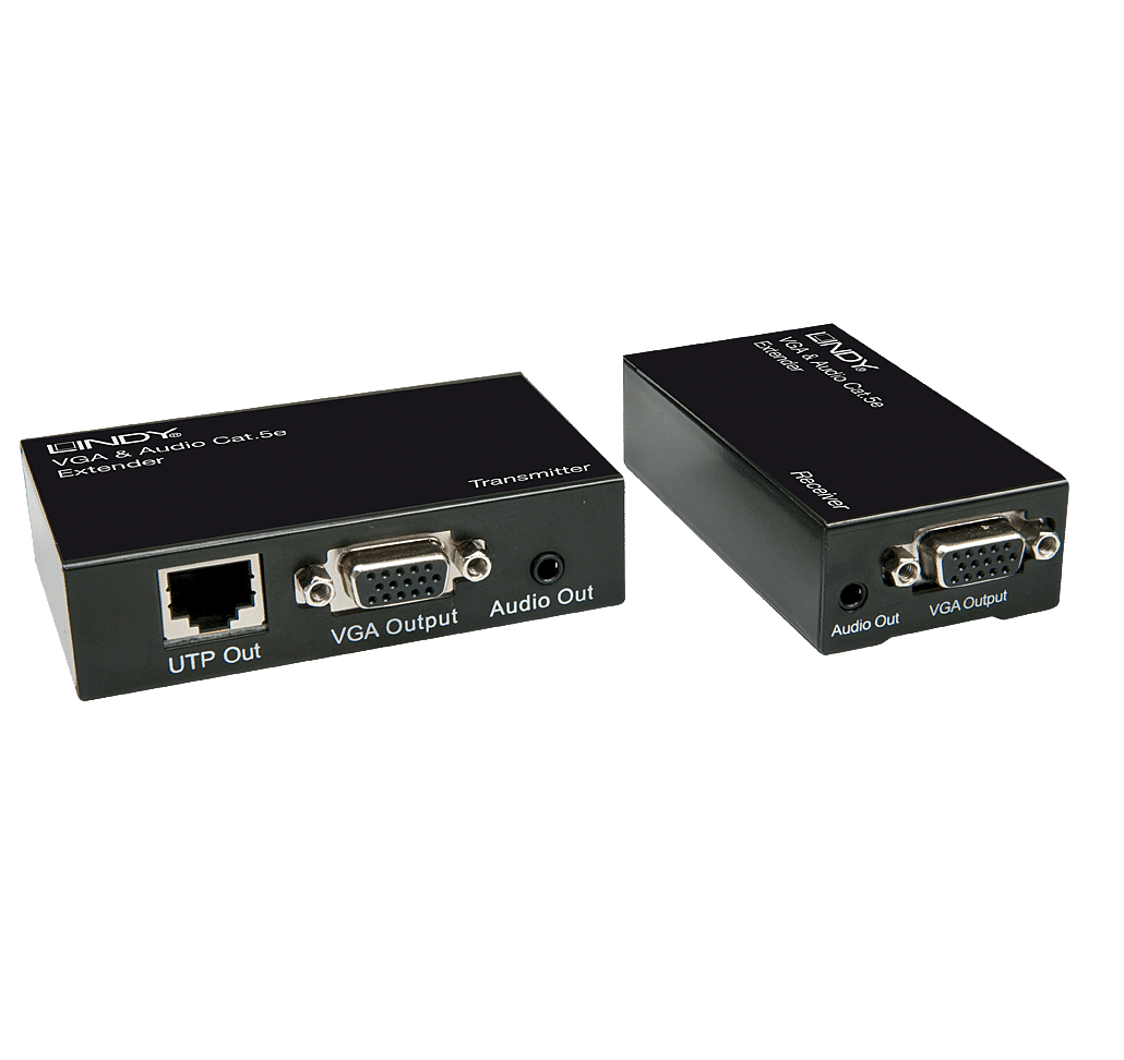 Cet extender transmet les signaux VGA et audio via une liaison dédiée sur câble réseau Cat.5/6. Il permet un transfert en utilisant du câble d'installation (monobrin) de haute qualité, jusqu'à 300m. L'émetteur (Transmitter) dispose de ports moniteur local de façon à pouvoir y connecter un écran ainsi que des haut-parleurs ou un casque audio.