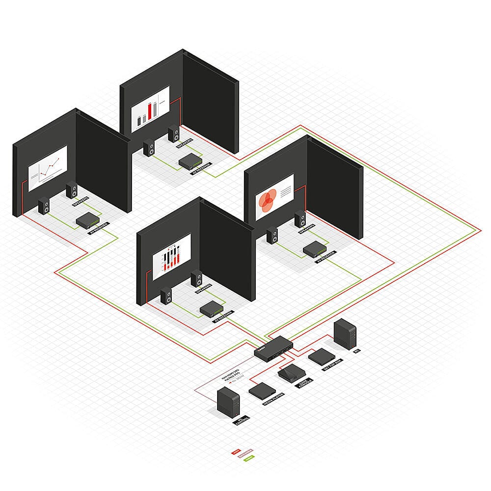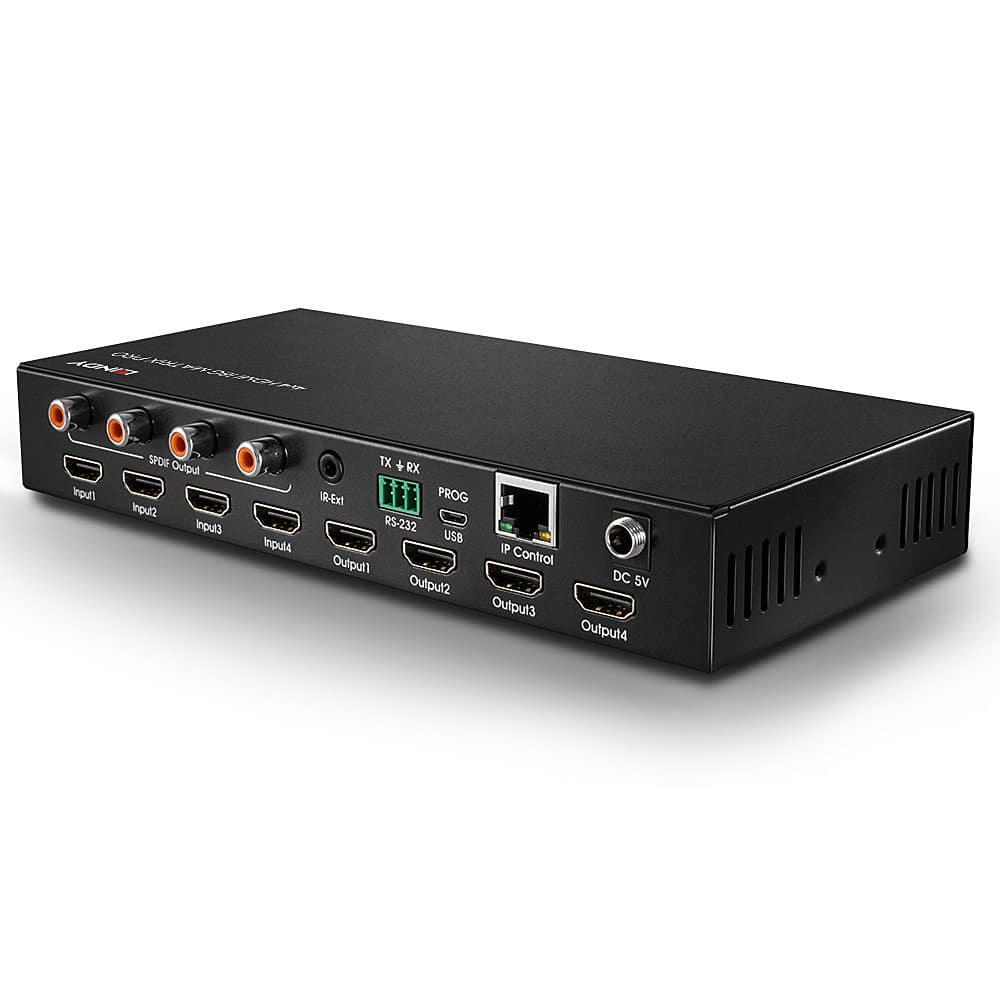 Cette matrice peut être facilement contrôlée par l'intermédiaire d'un bouton-poussoir sur l'appareil, tandis que la télécommande et l'extension IR incluses permettent également à l'utilisateur d'avoir un meilleur contrôle sur plusieurs vidéos et écrans, idéal pour les salons professionnels, présentations de formation ou démonstrations commerciales.