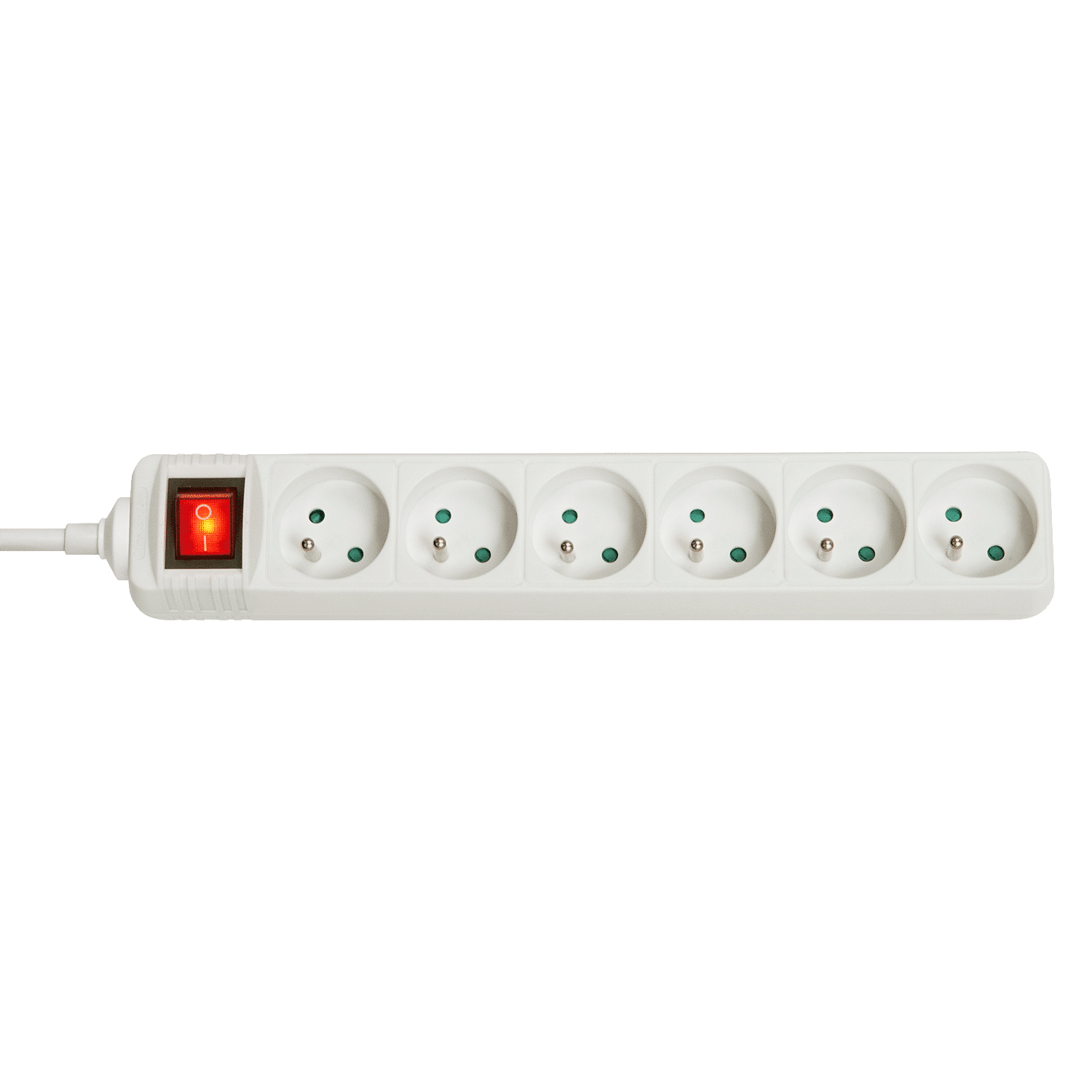 Multiprise 6 prises françaises orientées à 45°, pour faciliter le branchement , cordon secteur longueur 1,4m, avec interrupteur