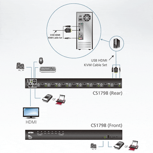 - 2 câbles HDMI/USB spécifiques KVM (2L-7D02UH)