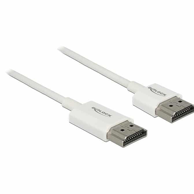 Ce câble HDMI haute vitesse avec Ethernet haut de gamme de Delock se distingue par son diamètre réduit et de ses connecteurs courts.