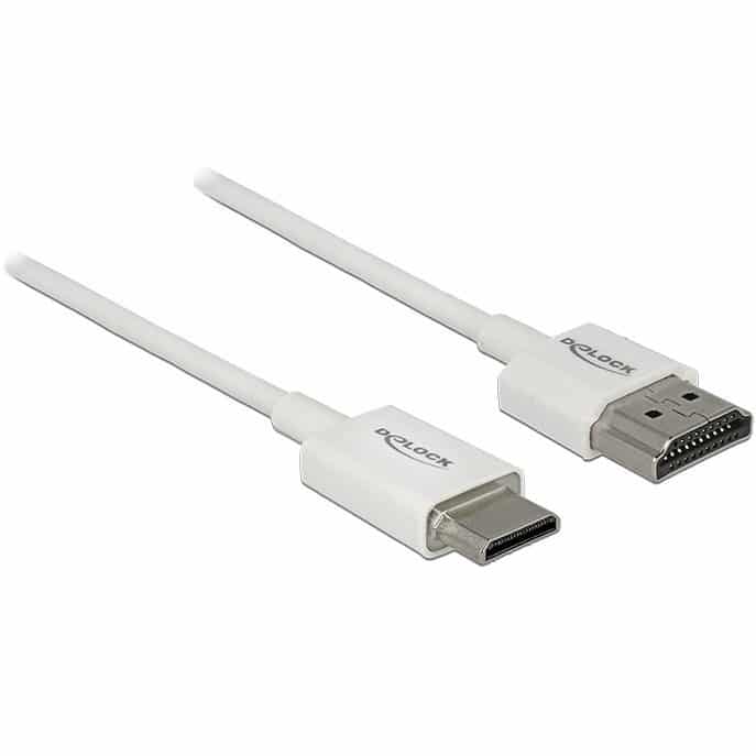 Ce câble HDMI haute vitesse avec Ethernet haut de gamme Delock permet la connexion entre une caméra ou une tablette avec une interface Mini HDMI et un moniteur ou une télévision avec un port HDMI-A.