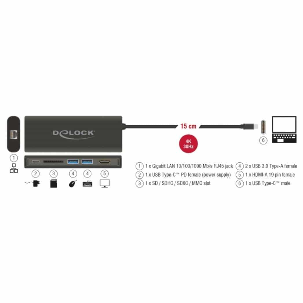 - Hub 5 ports USB 3.1 Gen 1 / USB 3.0 SuperSpeed intégré