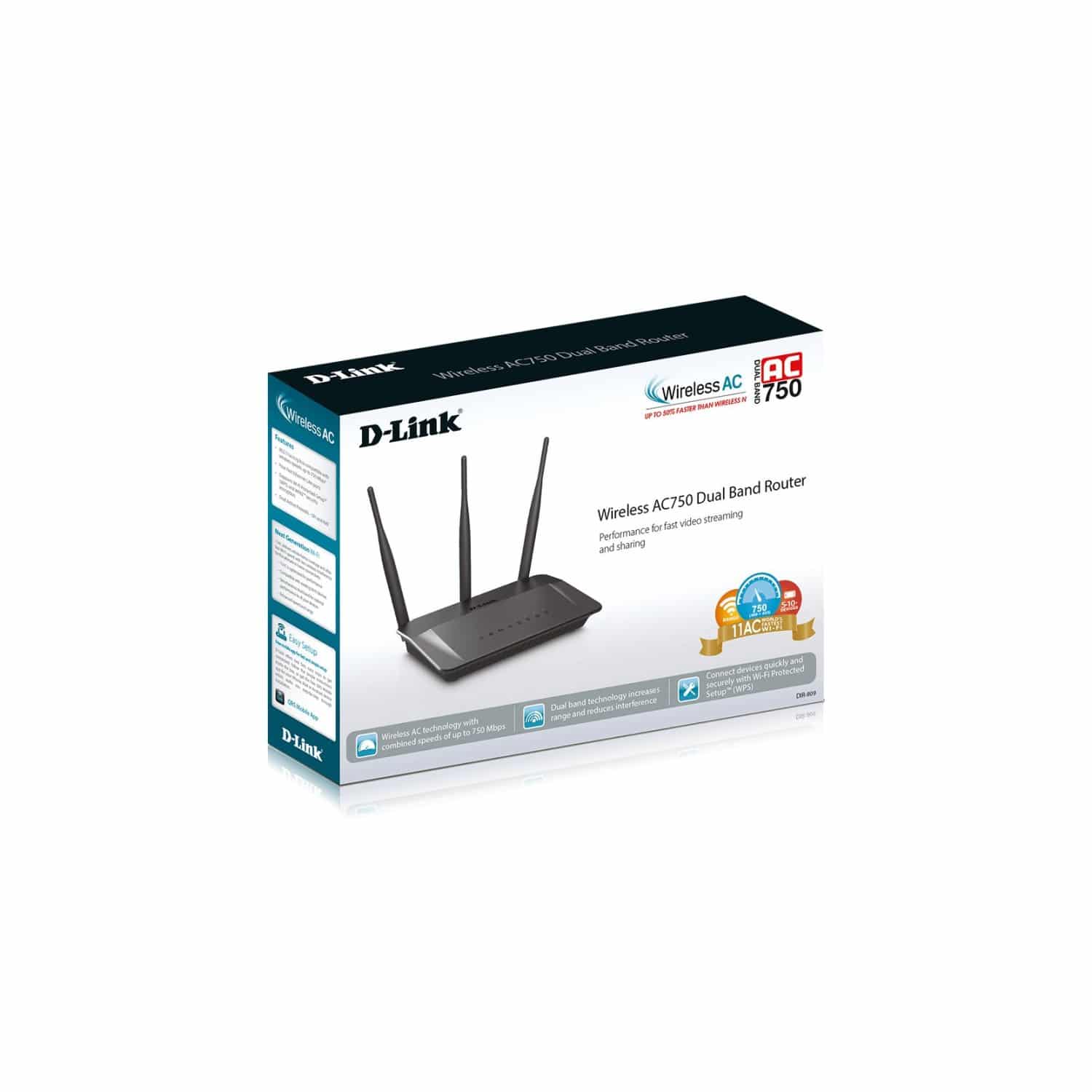 Routeur Wireless AC750 Dual Band – Antennes externes – 802.11ac 5GHz 450Mbps max. – IEEE 802.11n 2.4GHz 300Mbps max – 802.11n avec 2×2 Spatial Streams (MIMO) et 802.11ac 2×2 Spatial Streams (MIMO) pour atteindre une vitesse combinée de 750Mbps – 5 ports 10/100, 1 WAN – 4 LAN – WPA/WPA2