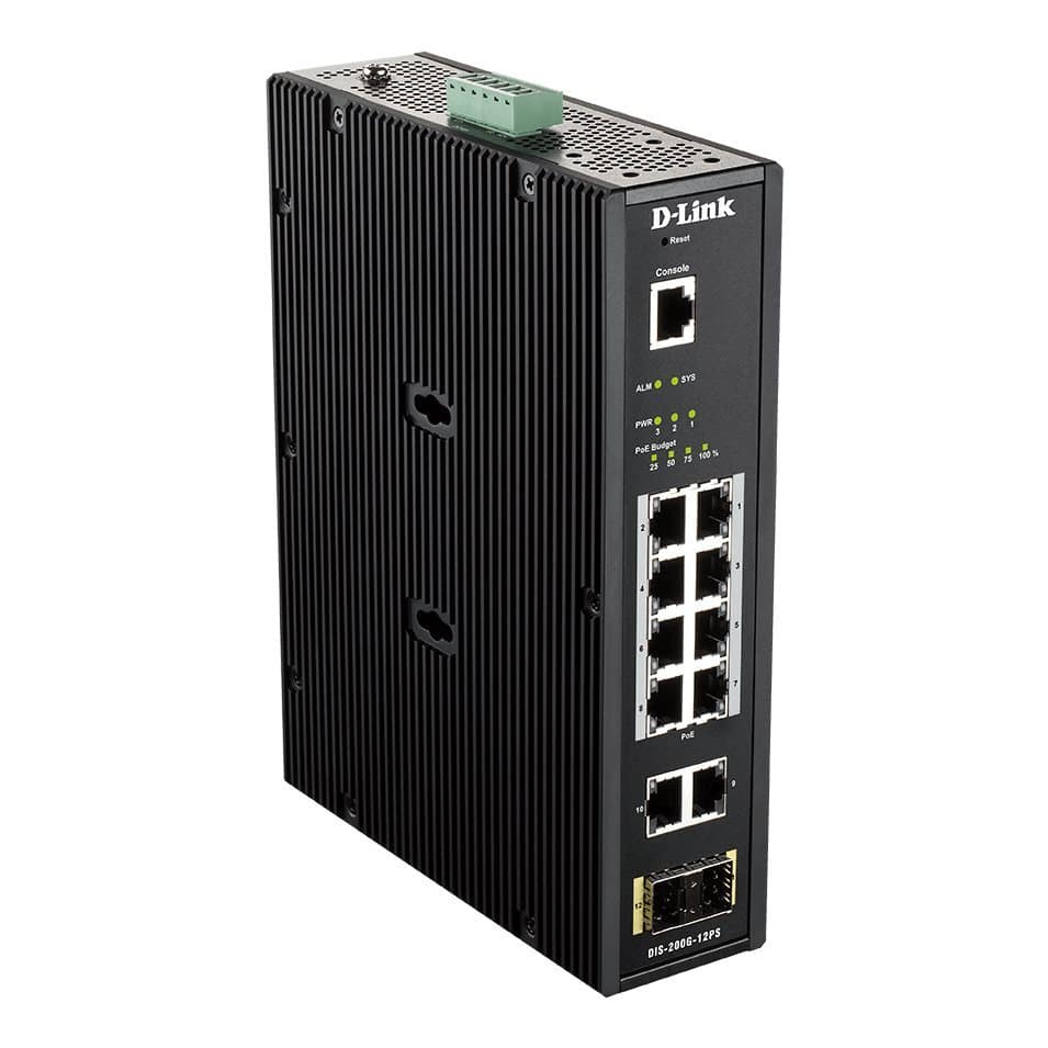Switch Manageable Smart L2 Industriel 12 Ports – 10 ports Gigabit (8xPoE Budget 240W) + 2 ports SFP – Format Rail-DIN