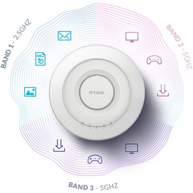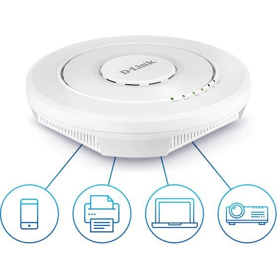 Point d'accès unifié PoE Tri-Band simultané Wave 2 AC2200 – Fonctionne en borne lourde ou légère – Boîtier certifié Plenum – 2 ports Gigabit – 802.3at – Fonctionne avec DWC1000 et DWC2000
