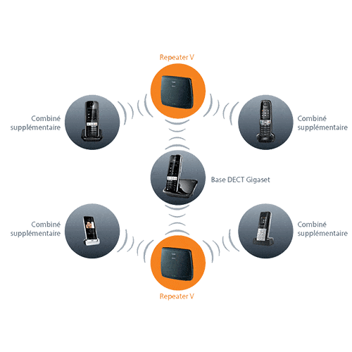 • Jusqu'à 6 répéteurs* par base Gigaset