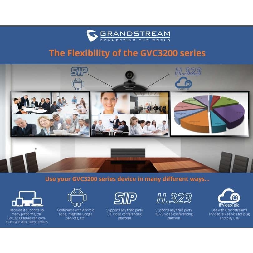 Le GVC3200 est une solution de visioconférence tout en un, polyvalente et flexible, pour les petites et moyennes entreprises pouvant accueillir jusqu'à 9 participants.