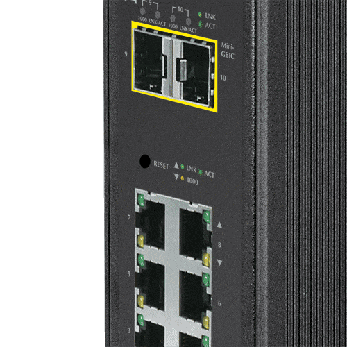 • 2 x ports SFP Mini Gbic 1000Base-SX/LX/BX et 100Base-FX