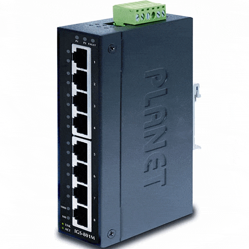 Switch 8 ports Gigabit fournissant un haut niveau de protection contre les interférences électromagnétiques et les ondes électriques.Sa plage de température de fonctionnement associé à la certification Classe I, division 2 (utilisation dans les endroits dangereux) permet à ce switch d'être placé dans presque n'importe quel endroit.