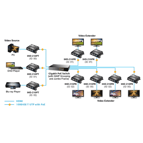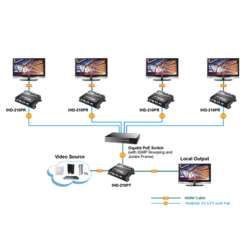 Video extender Over IPDéport vidéo HDMI over IP récepteur PoE
