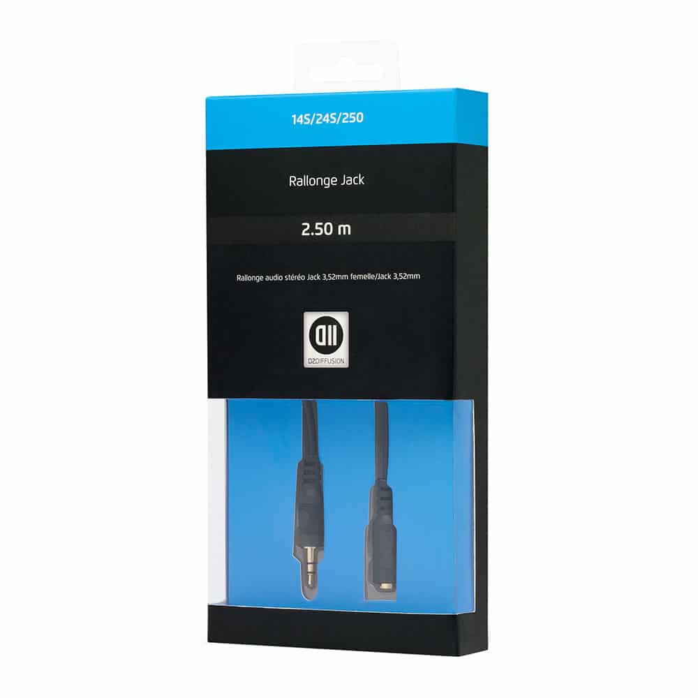 Câble Jack 3,5 mm mâle/femelle 2.50 Fiches Or