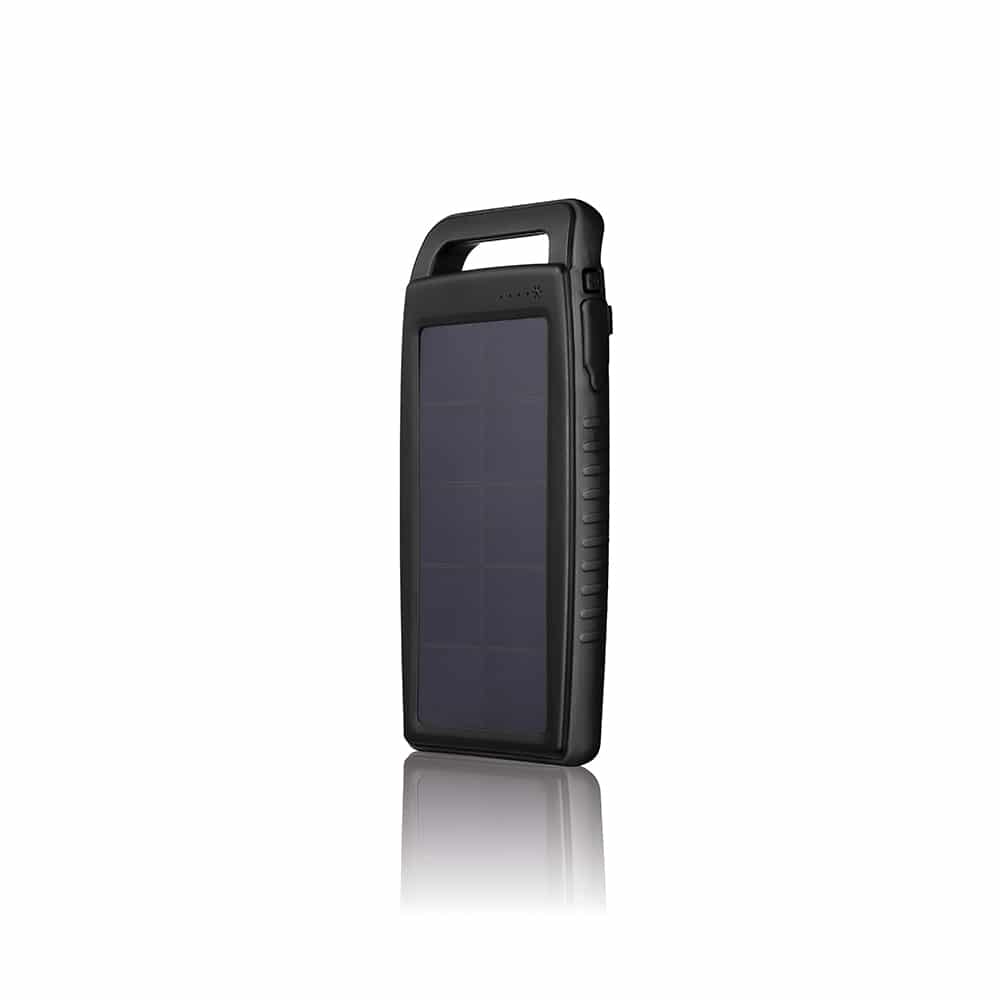 Batterie de secours sport 10000 mAh panneau solaire, lumière intégrée Résiste : à l’eau, aux chocs à la poussière. 2 ports: 1 1A et 1 2A