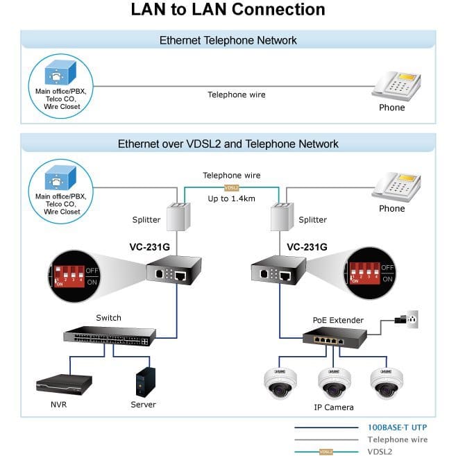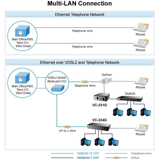 Boîtier convertisseur Ethernet / VDSL2 offrant des vitesses de transmission de données asymétriques & symétriques sur les lignes téléphoniques.