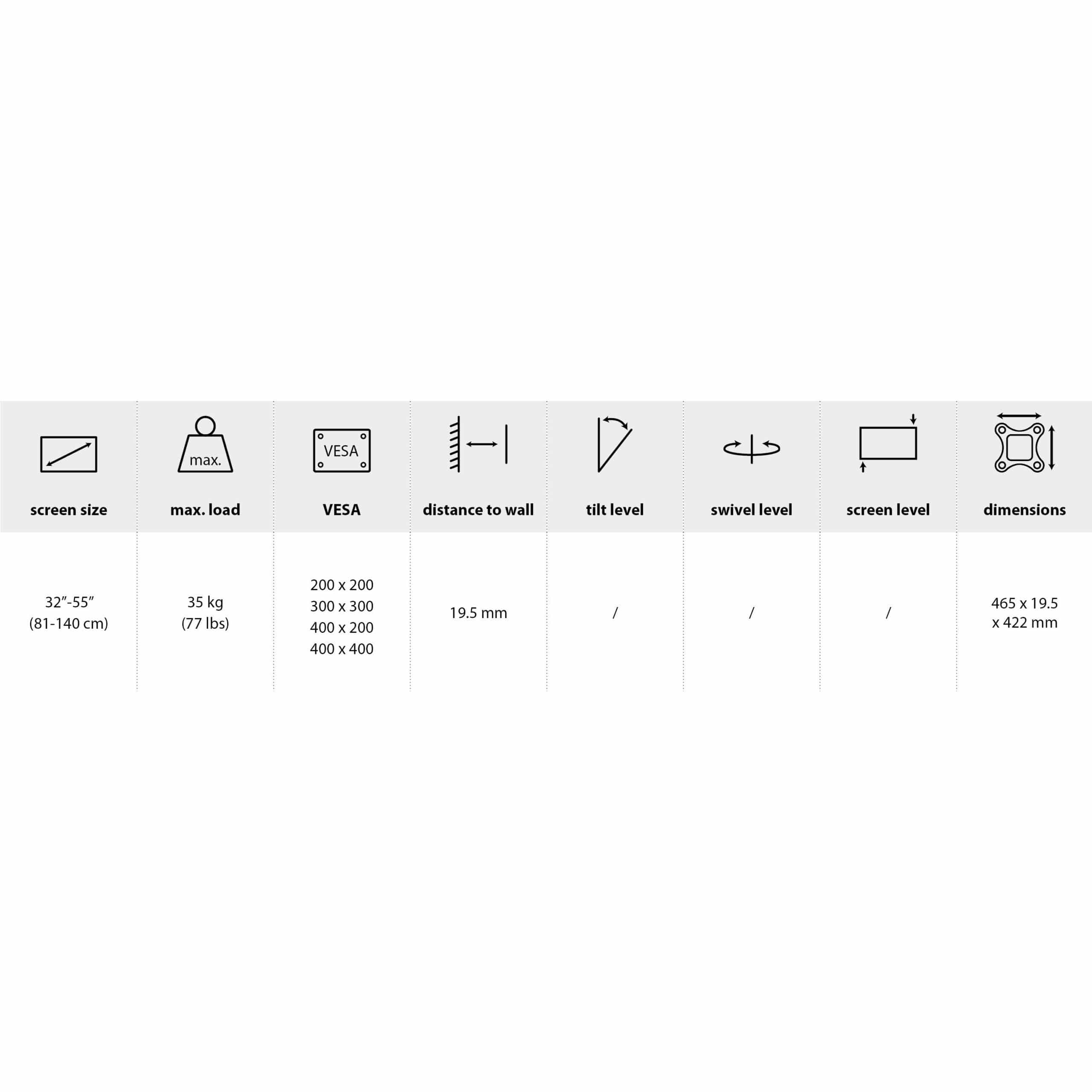 - Standard VESA : 200×200 – 300×300 – 400×200 – 400×400