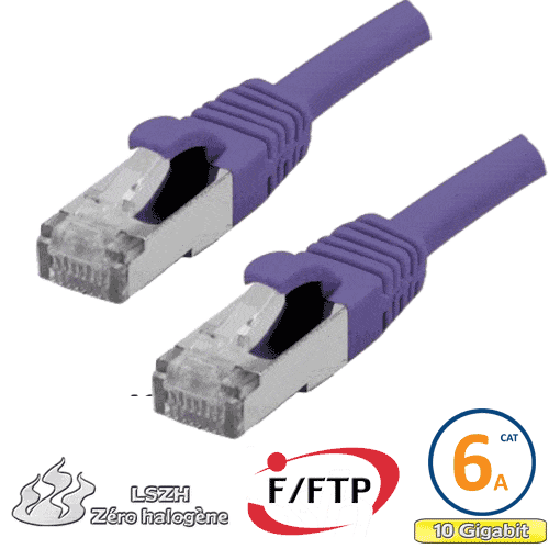 Cordon réseau RJ45 FFTP Cat 6a conforme à la norme de câble EIA/TIA568 et permet une transmission de données à 10Gbits/s.