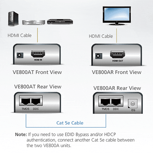 Doté de ports IR bidirectionnels des deux côtés de l'installation, l'équipement source peut être facilement contrôlé du côté de l'écran, et l'écran peut également être contrôlé du côté de la source HDMI. Combiné au contrôle CEC, qui permet de commander à partir d'une seule télécommande principale, ce système d'extension permet un contrôle complet et simple pour l'utilisateur.