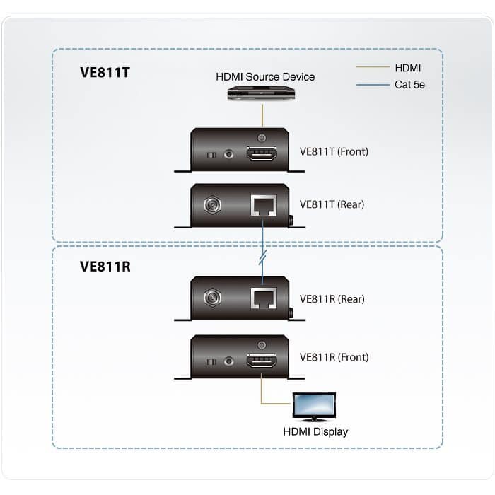 Doté de ports IR bidirectionnels des deux côtés de l'installation, l'équipement source peut être facilement contrôlé du côté de l'écran, et l'écran peut également être contrôlé du côté de la source HDMI. Combiné au contrôle CEC, qui permet de commander à partir d'une seule télécommande principale, ce système d'extension permet un contrôle complet et simple pour l'utilisateur.