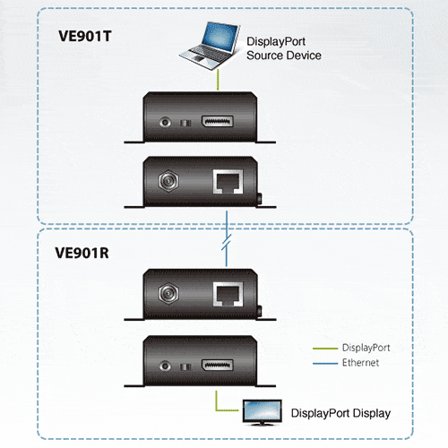 - Crée une distance de connexion plus grande entre une source et un affichage DisplayPort