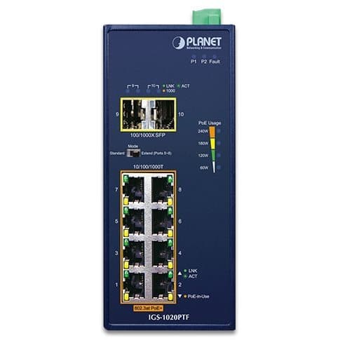 Switch 8 ports Gigabit fournissant un haut niveau de protection contre les interférences électromagnétiques et les ondes électriques.Sa plage de température de fonctionnement associé à la certification Classe I, division 2 (utilisation dans les endroits dangereux) permet à ce switch d'être placé dans presque n'importe quel endroit.