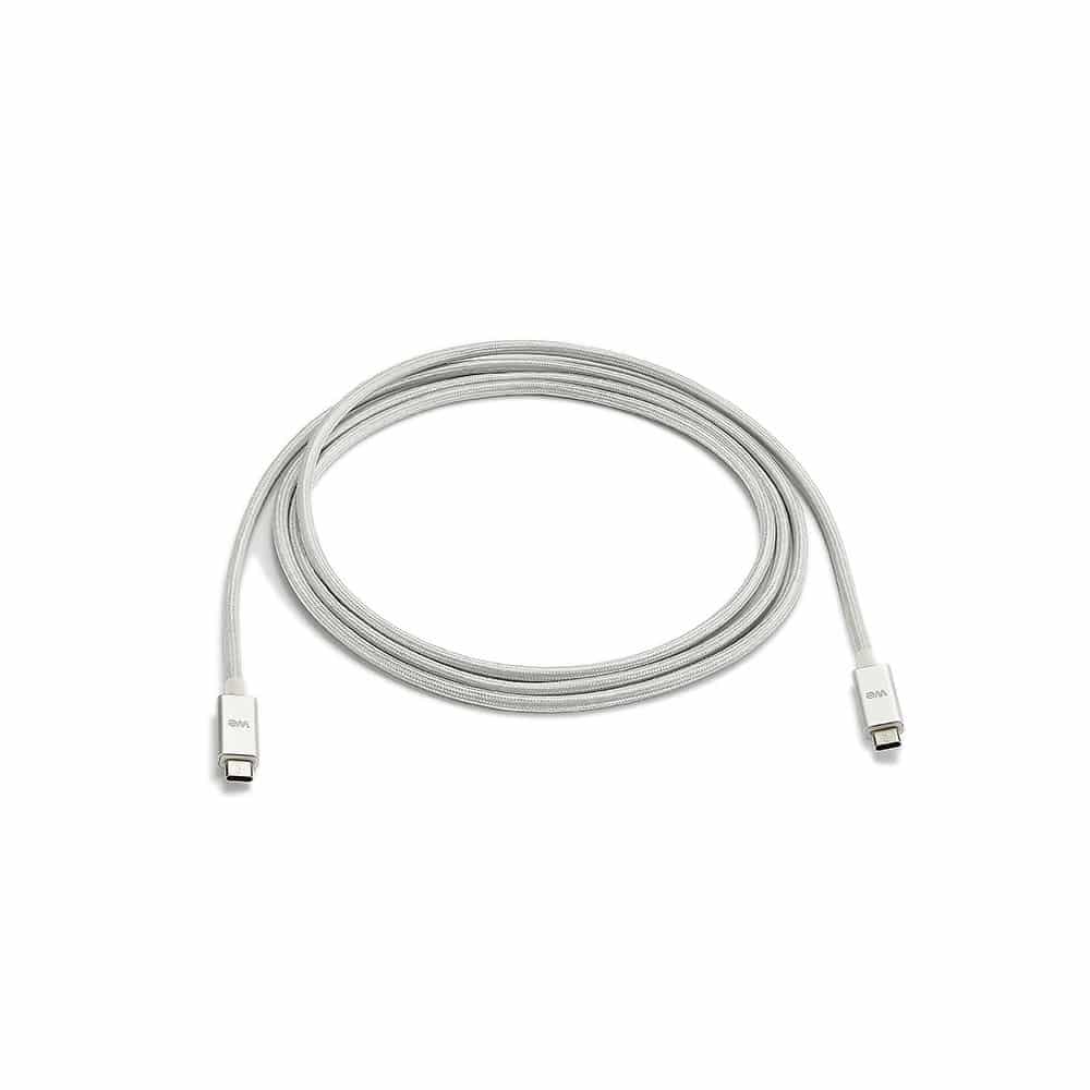 Câble USB-C mâle/USB-C mâle nylon 2 m – USB 3.1 – argent très resistant – grande longueur