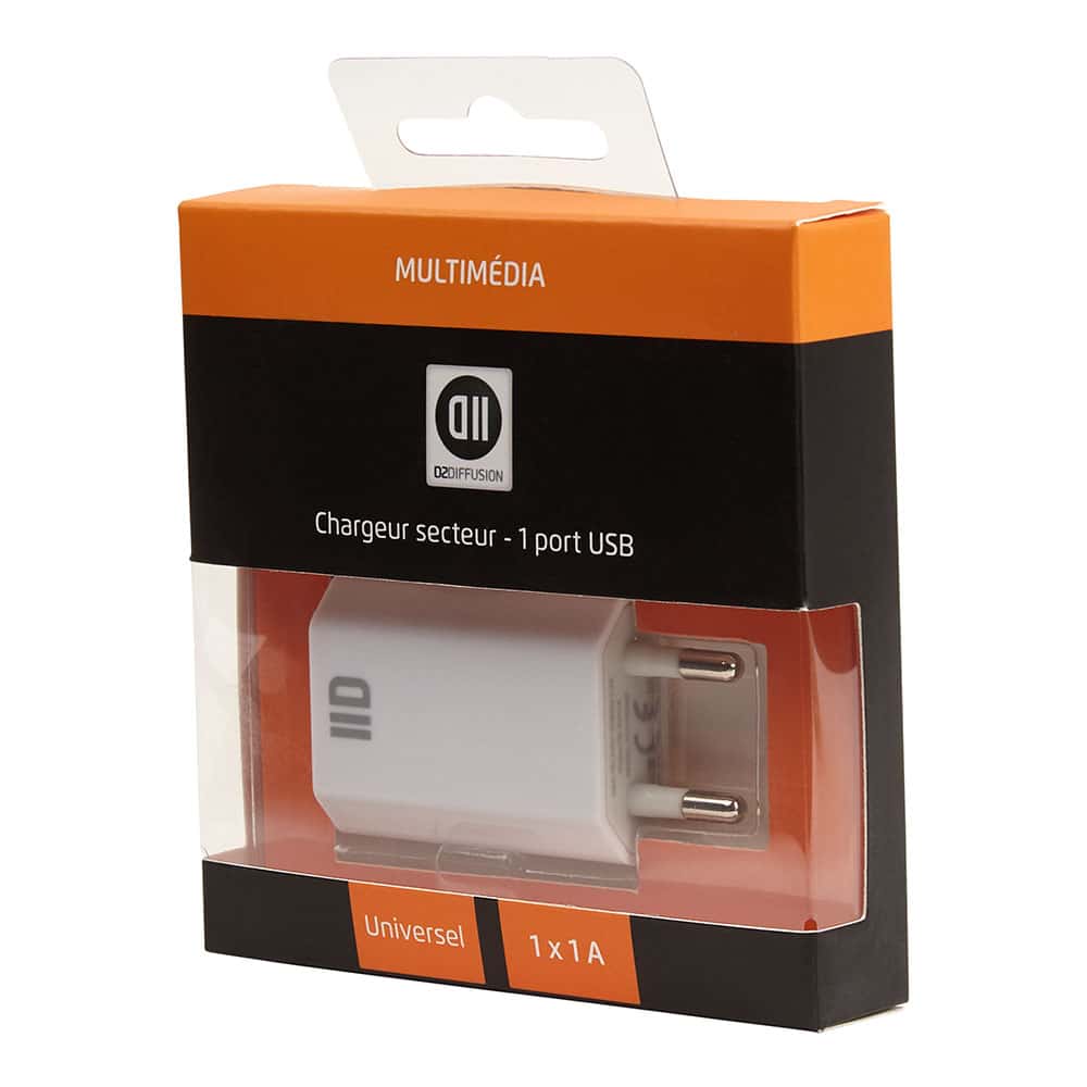 Chargeur secteur 1 USB 1A blanc design plat