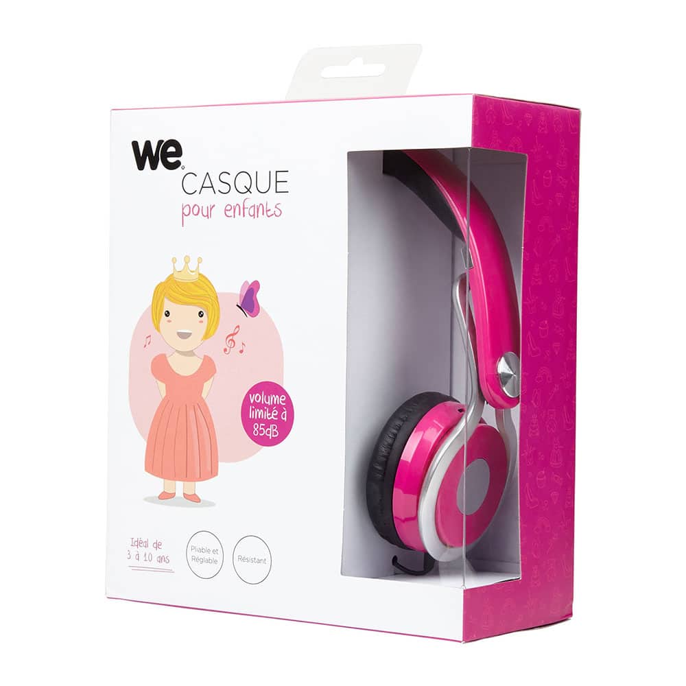 Casque enfant rose (3 à 10 ans) pliable/réglable/ergonomique limitation volume à 85dB câble 1.20m/Jack 3.5mm