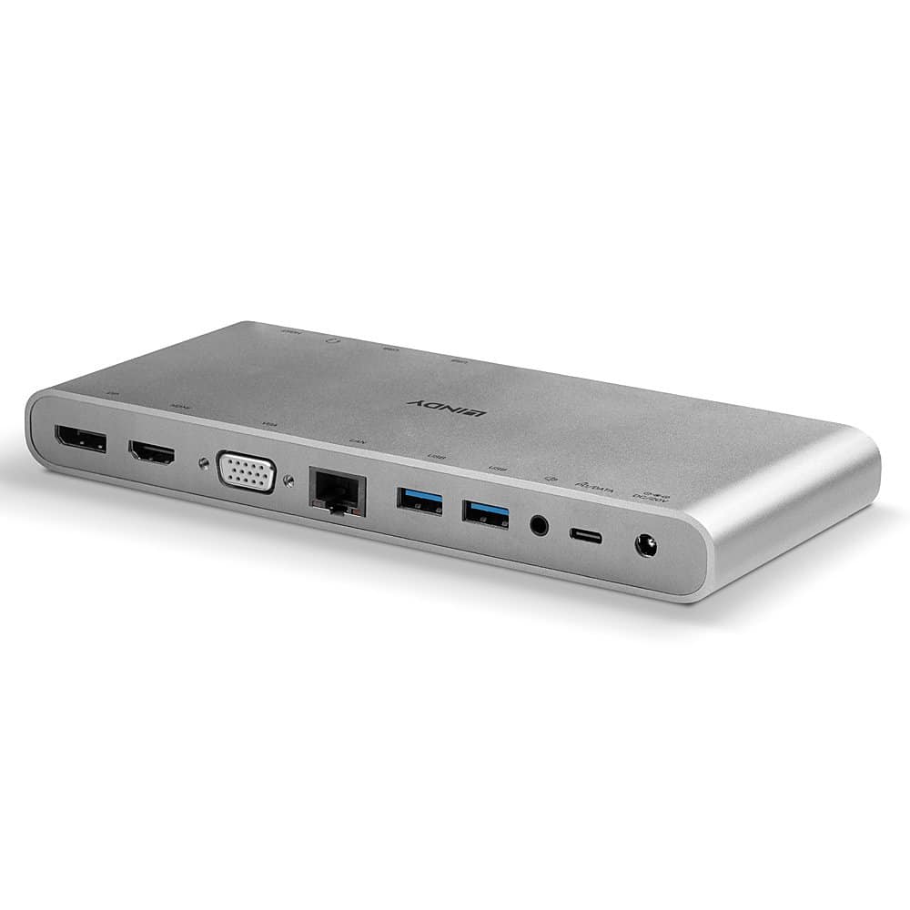 - Interface: USB Type C vers 4 x USB Type A / 1 x USB Type C / 1 x RJ45 / 1 x HDMI / 1 x DP / 1 x VGA / 2 x 3.5mm