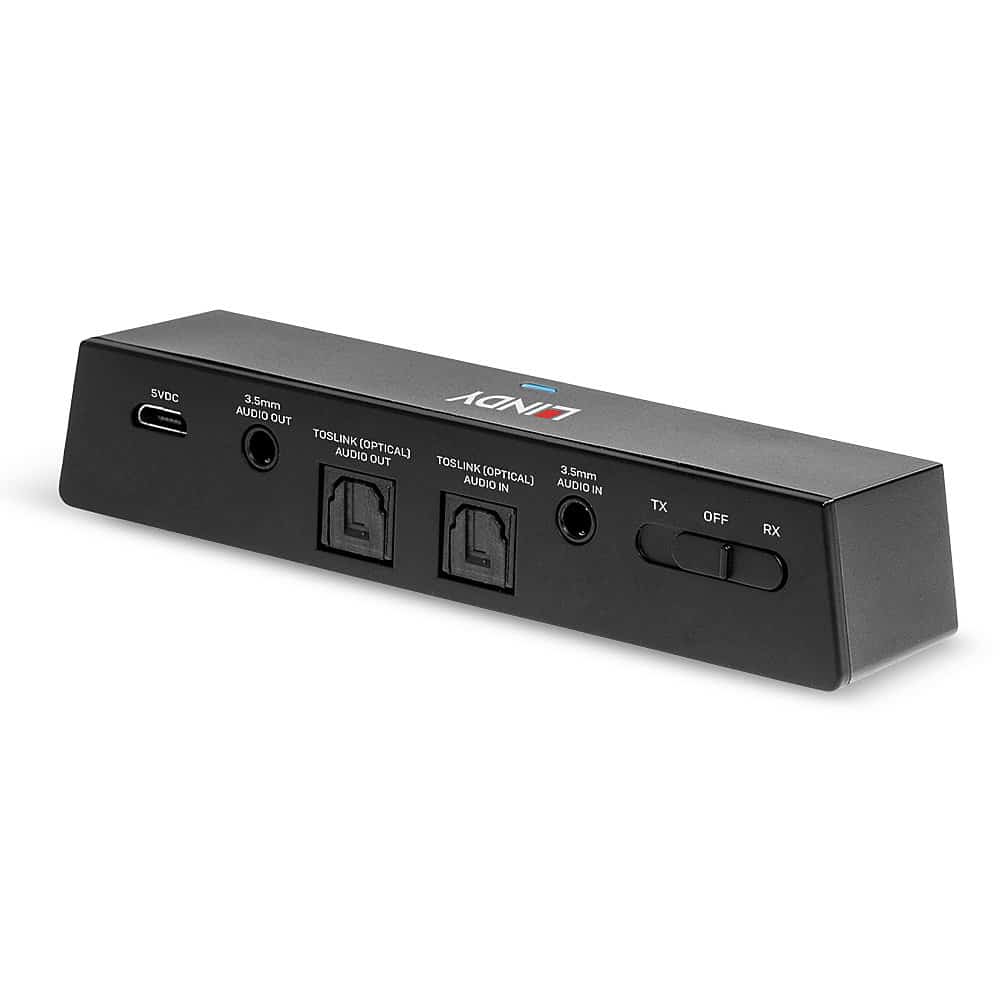 L'émetteur-récepteur audio Bluetooth 3,5 mm et TosLink (optique) de LINDY est une solution compacte et multifonctionnelle permettant de connecter sans fil des appareils non-Bluetooth à des sources et des sorties avec une connectivité Bluetooth. Les ports d'entrée jack 3,5 mm et TosLink (optique) permettent de connecter des appareils non-BT tels que des téléviseurs, des amplificateurs et des ordinateurs portables. Cet émetteur-récepteur peut ensuite transmettre sans fil un signal audio de haute qualité à des casques, des barres sonores ou des haut-parleurs Bluetooth. Ce système permet de travailler sans fil à partir d'une installation domestique lorsqu'il est utilisé avec un casque ou des écouteurs compatibles, ou encore de permettre des connexions AV sans câble dans des installations résidentielles.