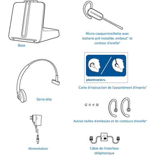 Le Plantronics CS 540 est livré avec 3 contours d'oreille et 1 serre tète.