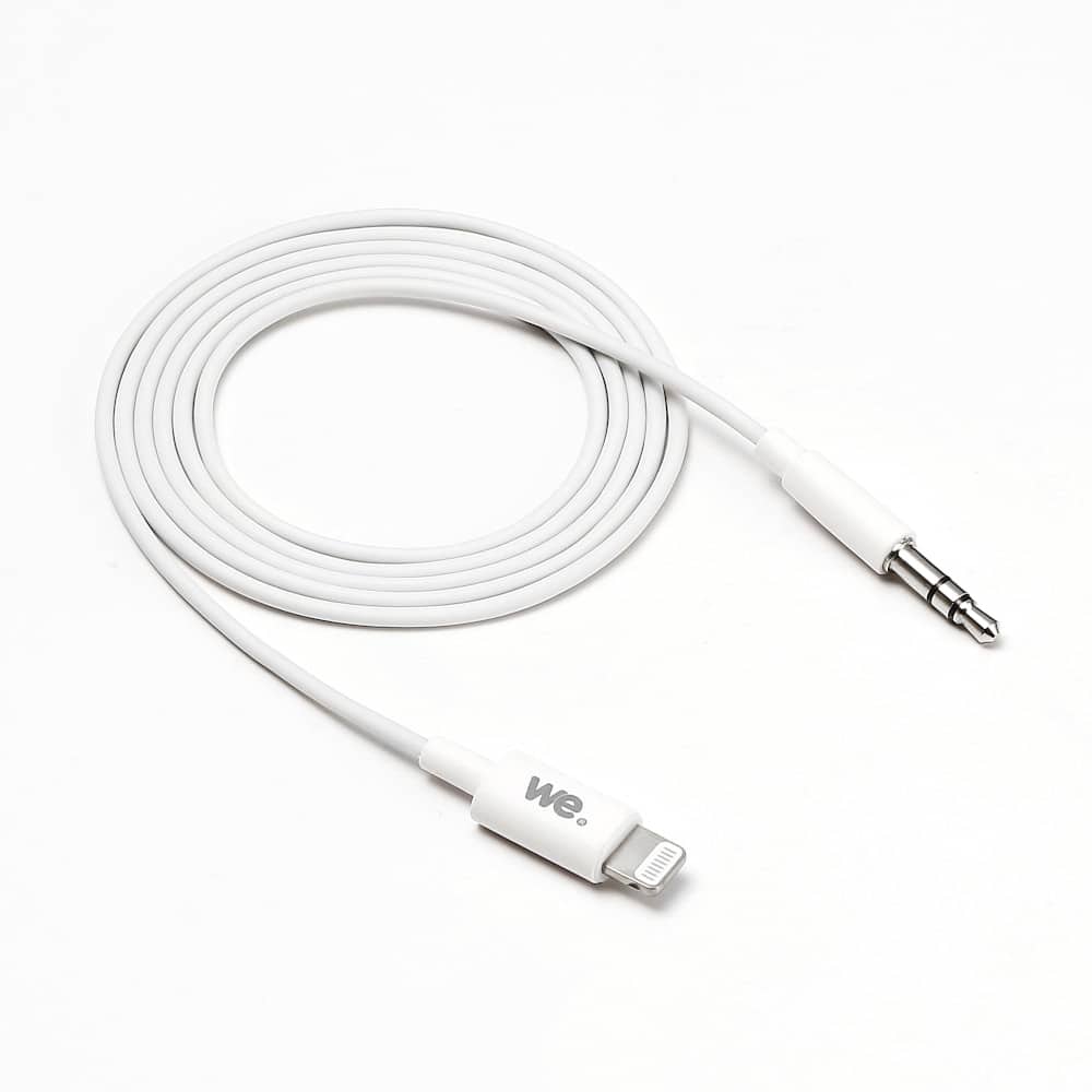 [Plug & Play] Le câble auxiliaire WE ne nécessite aucune installation au préalable, il suffit de brancher votre iPhone/iPad à un appareil doté d’une prise audio: il est prêt à fonctionner et à diffuser le son.