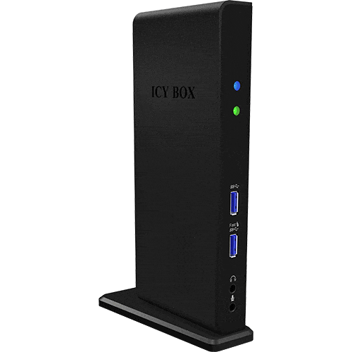 La station est dotée d'un hub USB 3.1 SuperSpeed intégré qui fournit quatre ports de type A et un port de type C. Le port de type C à l'arrière prend en charge l'alimentation et le transfert de données ; trois ports de type A prennent en charge la spécification de charge de batterie (Battery Charging) USB 1.2 pour la charge des appareils mobiles, qui peut fournir 5 V et jusqu'à 1,5 A pour une charge plus rapide par rapport à un port USB standard.