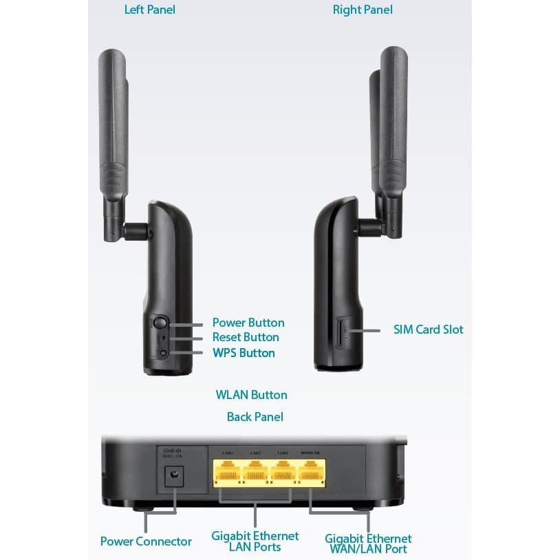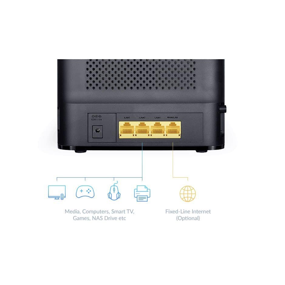 Routeur de bureau Multi-Wan 4G LTE Cat. 4 avec antennes externes – Wi-Fi AC1200 – Débit descendant/montant 150 Mbps/50 Mbps – 3 ports LAN Gigabit – 1 port WAN/LAN Gigabit