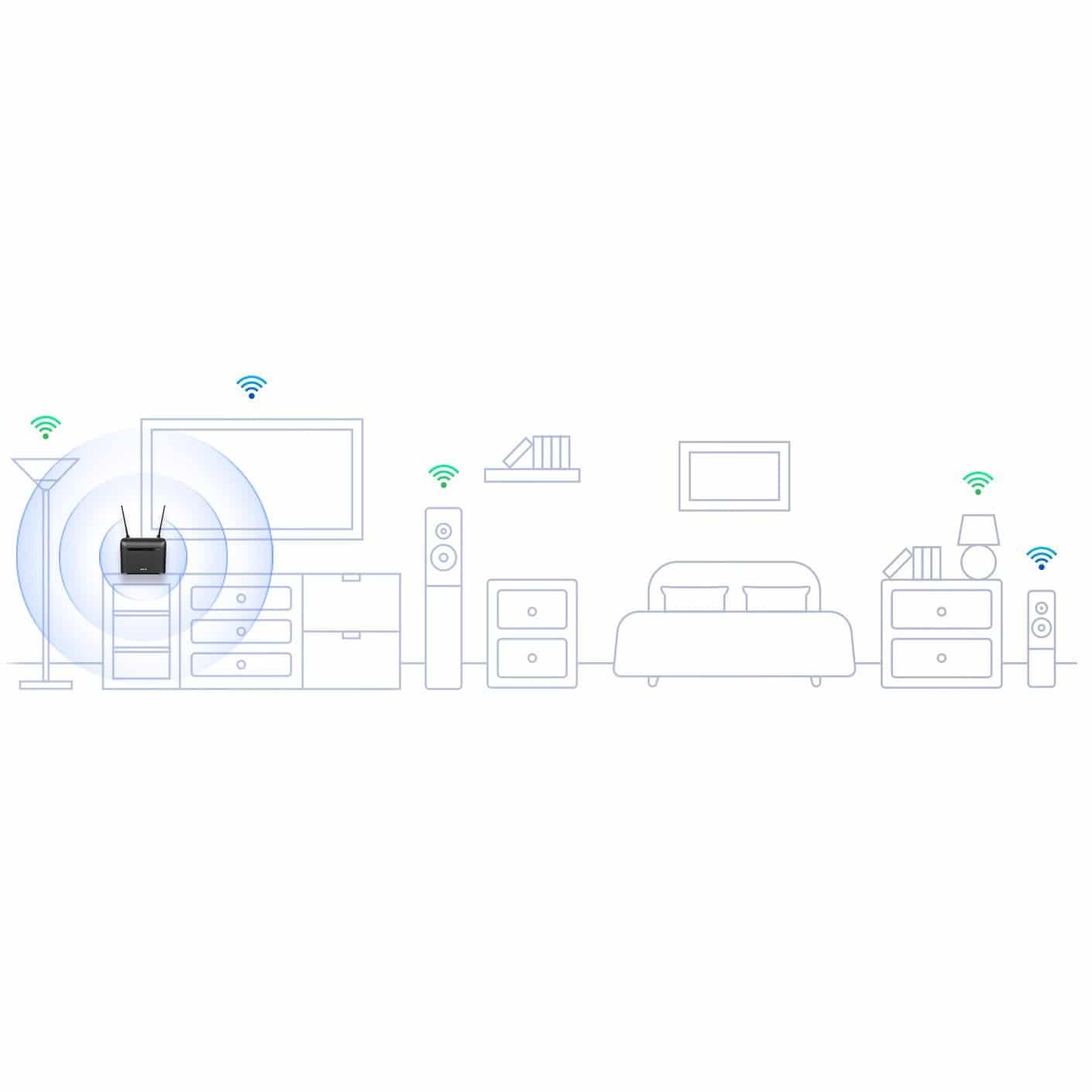 - Technologie sans fil AC1200 2,4 et 5GHz simultanés