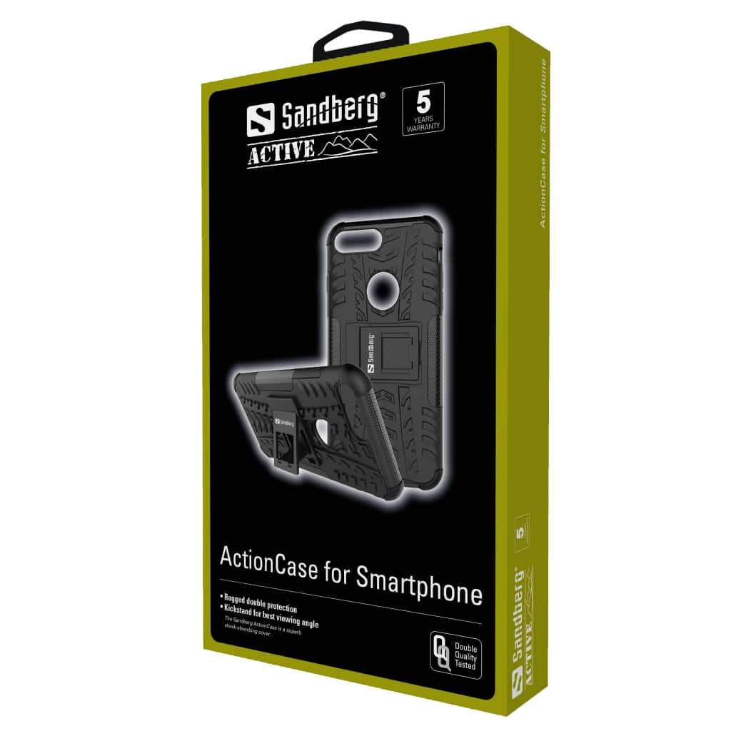 L’ActionCase de Sandberg est une superbe housse qui absorbe les chocs. Placez votre appareil dans cette housse souple, pour une protection complète, avec la coque en plastique dur. Elle est parfaite pour les appareils soumis à une forte usure et pour les activités extérieures. Un socle pratique et pliable est intégré à l’arrière de la housse, pour que vous puissiez regarder des films au bon angle, par exemple.
