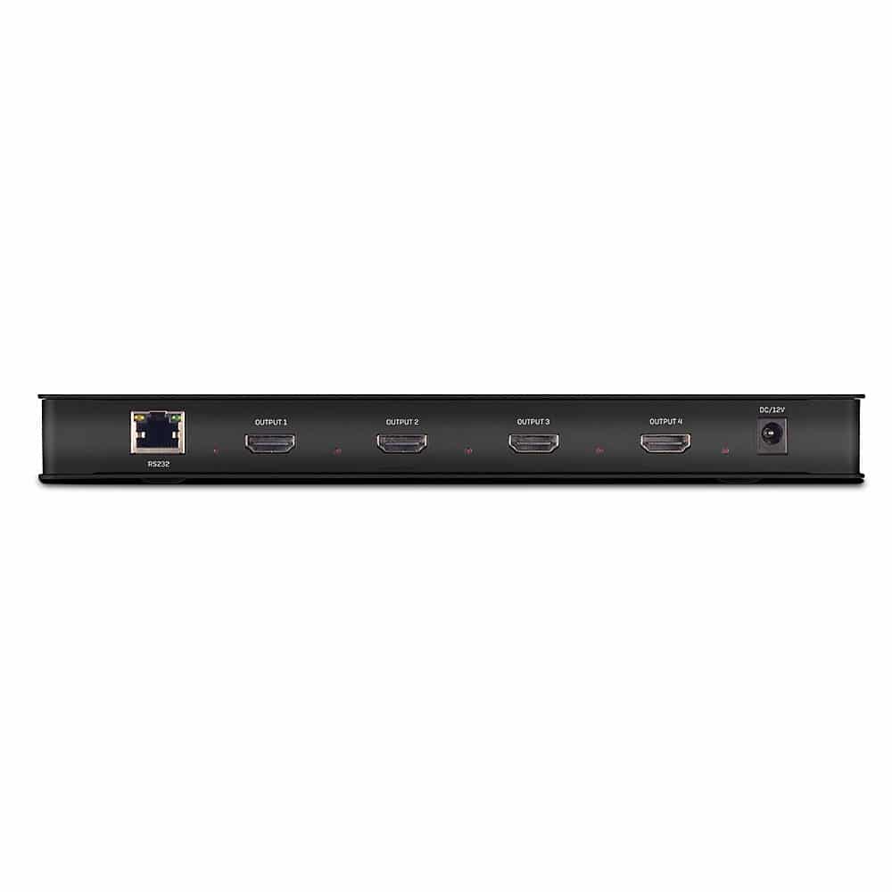 - Scale une entrée HDMI au travers de 4 affichages (2×2, 1×2, 1×4)