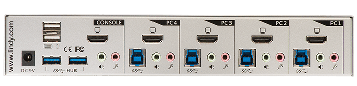 Le Switch KVM HDMI 10.2G, USB 2.0 & Audio, 4 ports de LINDY est une solution compacte permettant l'accès et le contrôle de quatre PC équipés de HDMI à partir d'un ensemble clavier, souris et écran.