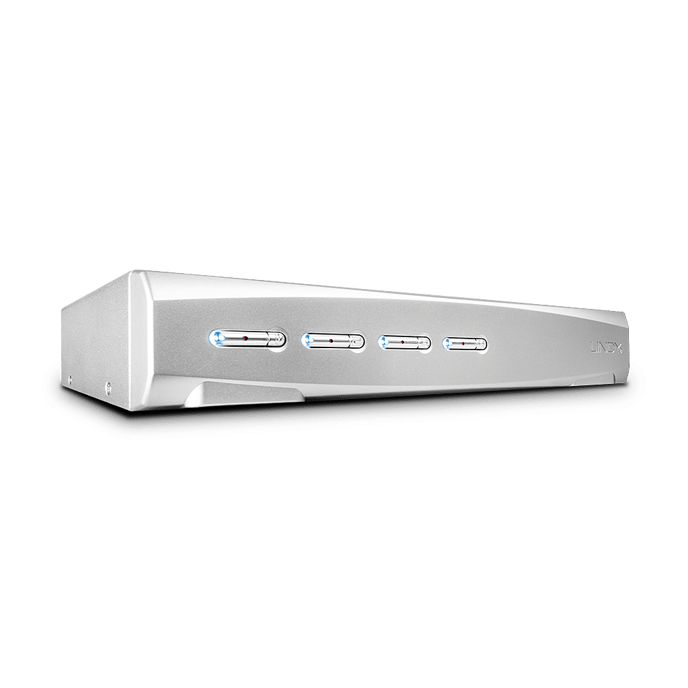 Le Switch KVM DisplayPort 1.2, USB 2.0 & Audio, 4 ports de LINDY est une solution compacte permettant l'accès et le contrôle de quatre PC équipés de DP à partir d'un clavier, d'une souris et d'un écran.