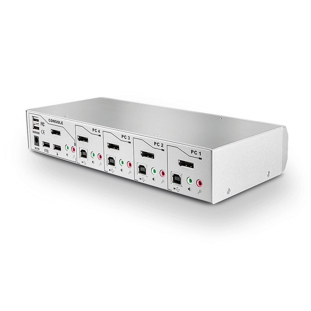 La prise en charge de résolutions allant jusqu'à 4K Ultra HD 60Hz garantit la meilleure qualité d'image, parfaite pour les contenus graphiques exigeants dans les installations de jeux, le montage vidéo ou les stations de travail de contrôle de systèmes quadruples. Les ports de sortie audio de l'unité principale permettent également aux utilisateurs de connecter des écouteurs ou des haut-parleurs pour ajouter un son 2CH immersif et un microphone, tandis que des périphériques USB supplémentaires peuvent être intégrés au concentrateur USB 2.0 à 2 ports. Les deux hubs audio et USB peuvent être commutés indépendamment des ordinateurs, ce qui permet d'imprimer à partir d'un PC tout en travaillant sur un autre par exemple.