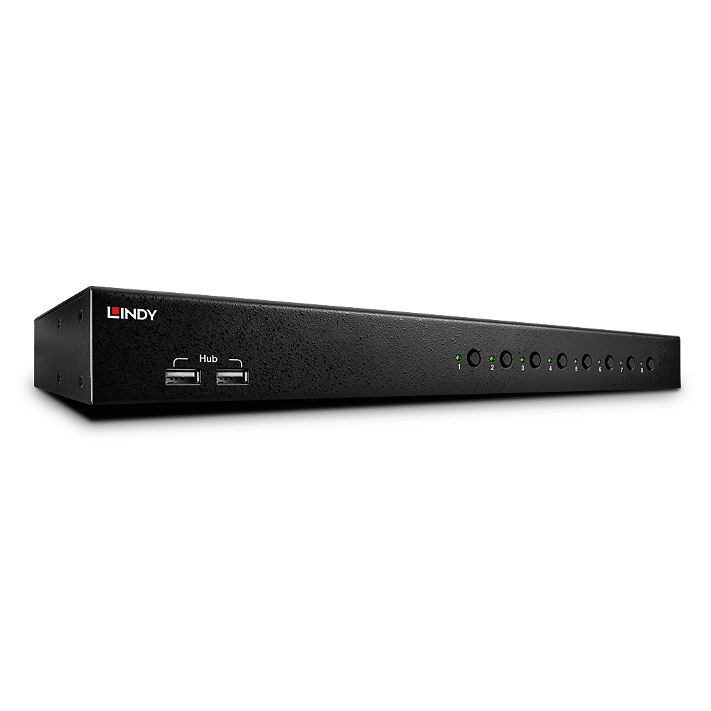 Le commutateur n'occupe qu'un seul espace 1U dans un rack 19" et prend en charge des résolutions d'écran allant jusqu'à 1920×1200, ce qui est idéal pour assurer une clarté optimale s'il est utilisé dans des médias numériques ou des scénarios de conception graphique. Il offre 2 modes de commutation simples, via les touches de raccourci du clavier et les boutons du panneau avant.